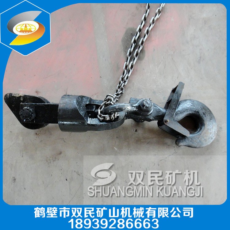 鉤頭裝置主要作為立井鑿井提升懸掛吊桶用。 根據吊桶實際載荷,選擇相應等級型號的鉤頭裝置。