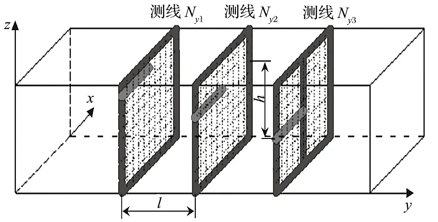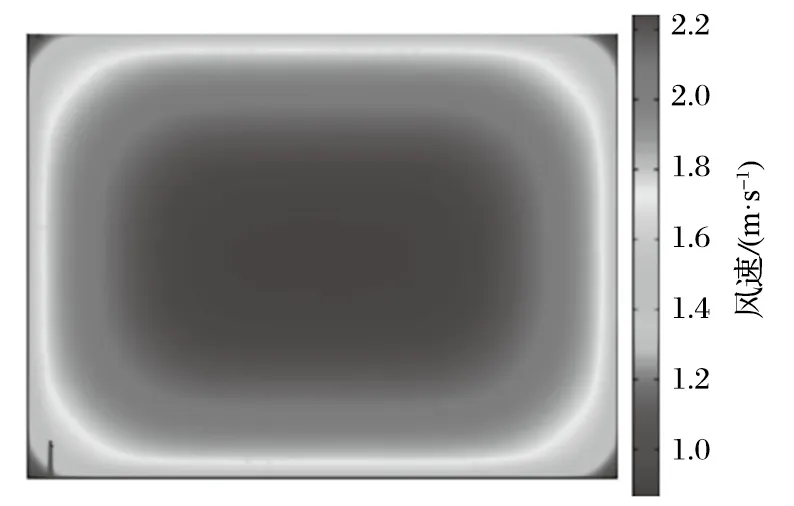 由于井下各點巷道過風斷面大小不一、巷道表面平整度造成的風阻大小不一等客觀現象,導致風速監測時常出現精度誤差。因此,通過改變布點方式,采取階梯網格方式實現密集布點,將原有斷面進行切割細分,然后分析斷面內的風流風速分布規律,從而得出相對準確的平均風速在斷面內的實際位置。經過優化后,將風速傳感器進行定點安裝,以此提升風速采集的準確性。階梯網格方式分析風速分布規律如圖1 所示,矩形斷面實測風速分布如圖2 所示。